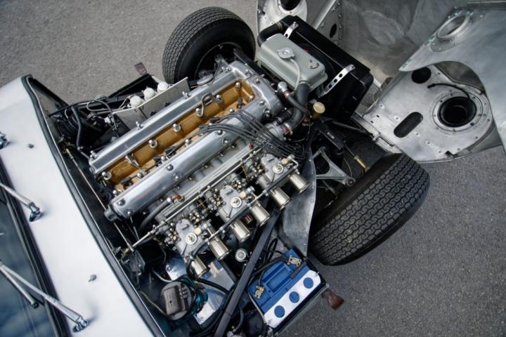 Iconic re-evocation of the hard-top roadster in semi-lightweight configuration, a huge body lightening job with complete stripping of the bodywork, replacement of steel doors and hoods by aluminum elements, as well as the hard top, its original engine equipped with 3 twin weber 45 carburetors, lightened flywheel, crankcase bulkhead, 300 hp, optimized cooling system, Salisbury rear axle with Thomton limited slip, reinforced clutch, 9″ and 11″ magnesium wheels, 4-piston calipers and ventilated front discs, optimized suspension, Halda Tripmaster, fire extinguisher, roll bars, harness, competition tank.