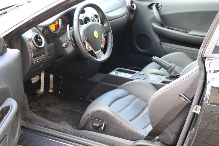 Het interieur verkeert in uitstekende staat en ruikt zelfs nog als nieuw! Het is uitgevoerd in 'Nero Black' met lederen bekleding. Ondanks dat de F 430 een snelle sportwagen is, voorziet het interieur de inzittenden van meer dan voldoende comfort. Denk aan airconditioning en een alarmsysteem. Het interieur beschikt bovendien over mooie en kostbare opties: een radio/cd-speler dat beschikt over een bluetooth systeem (nieuwprijs € 2.387,-), elektrisch verstelbare stoelen (nieuwprijs € 3.601) en parkeersensoren aan de achterzijde. Tevens is een automatisch uitklapbaar navigatiescherm een Bose surround sound systeem aanwezig. Het interieur is sportief afgewerkt met carbon-trim delen op het dashboard en op de instaplijsten. Door middel van flippers aan het stuur kan de automatische 6-traps versnellingsbak bediend worden. Verder is op het stuur de opvallende startknop aanwezig en een draaiknop, waarmee de wagendynamiek afgesteld kan worden (manettino), iets wat door Ferrari voor het eerst op de F430 geïntroduceerd werd.