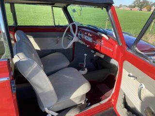 Beautifully restored 1965 VW Beetle Cabriolet in Robin Red. The car is body-off restored, with new front and rear brakes, 1600cc engine (50 hp), seats reupholstered, everything impeccably restored during the Beetle restoration. The body was painted, including the inside of the wheel arches, so you can quickly see how well this Beetle Cabriolet has been restored, with original whitewall tires and even the spare wheel.