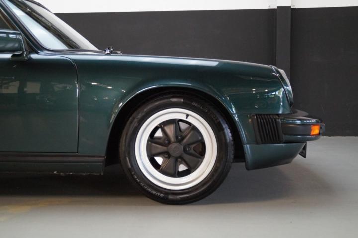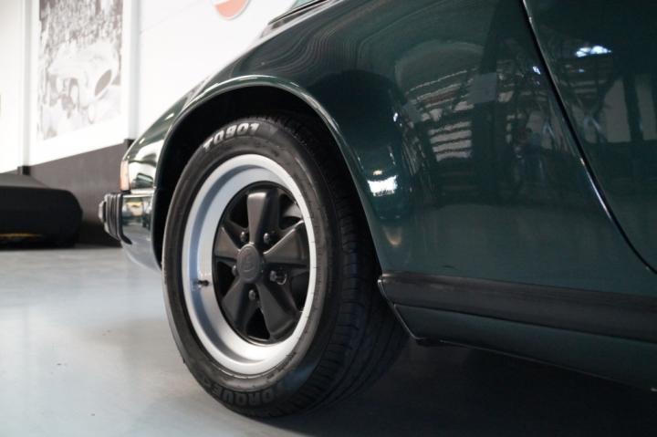 Finished in the rare and elegant Oak Green Metallic, this SC shows off its period charm in the best possible light. The color shifts subtly depending on the surroundings, offering a deep, classic tone that perfectly suits the shape of the 911.