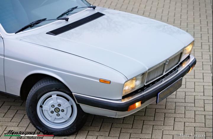 Lancia Gamma 2000 Berlina, jaar 1981. Chassisnummer ZLA830A32000066XX, motornummer 830A2000*0112XX* Kleur goud metallic (Oro Metallizato) gecombineerd met een beige stoffen interieur en donkerbruin tapijt. De Lancia Gamma Berlina van de 2e serie (1980-1984) met de 2 Liter boxermotor werd enkel in Italië verkocht, een zeldzaam model waarvan er slechts 2465 werden gebouwd. De auto is ontworpen door Pininfarina en technisch was alles aan de Gamma het neusje van de zalm. De Gamma is voorzien van volledig onafhankelijke wielophanging, schijfremmen aan alle wielen en een vijfversnellingsbak. Dit prachtige exemplaar is op 21 maart 1981 nieuw geleverd aan Francesco en Anna Marzo door de Lancia dealer in Lecce, Italië. De heer Marzo was arts in het plaatselijke ziekenhuis en de auto werd gebruikt in de weekenden en voor langere ritten. De heer Marzo overleed in het jaar 1997. Vanaf dat moment stond de Lancia in de garage. Mevrouw Marzo kon geen afscheid nemen van de Lancia. Na haar dood, ruim twintig jaar later, werd de auto door de familie verkocht. Onze contactpersoon trof de Lancia aan in volledig originele staat en met iets meer dan 21.100 originele kilometers op de teller. De auto kreeg een perfecte en professionele nieuwe lakbeurt en nieuwe achterlichten (deze vertoonden enige barsten) werden vernieuwd. Het beige stoffen interieur en het bruine tapijt zijn nog altijd in perfecte staat en als nieuw! Na interne reiniging en service van de mechanische delen hebben we de motor weer tot leven gebracht. De distributieriem wordt bij afleveringsbeurt van de auto vernieuwd. De teller staat momenteel op 21.136 kilometer. Deze Lancia Gamma Berlina verkeert in een zeer goede tot uitstekende originele staat! De auto wordt geleverd met Italiaanse documenten. Deze zeldzame Lancia Gamma Berlina is een prachtige vondst voor de Lancia verzamelaar/liefhebber.