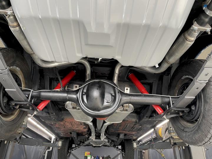 It has a wonderful Caspian blue metallic paint a matching two-tone blue with white Pony Deluxe interior that all looks really nice and clean the underside the floors are original and never replaced even the original red oxide is visible with the blue over spray exhausted fuel tank brake brakes some suspension parts renewed grill mounted foglight, correct GT Double exhaust system and a 4-speed manual transmission. This Fastback comes with a set of red wall tires, really cool.