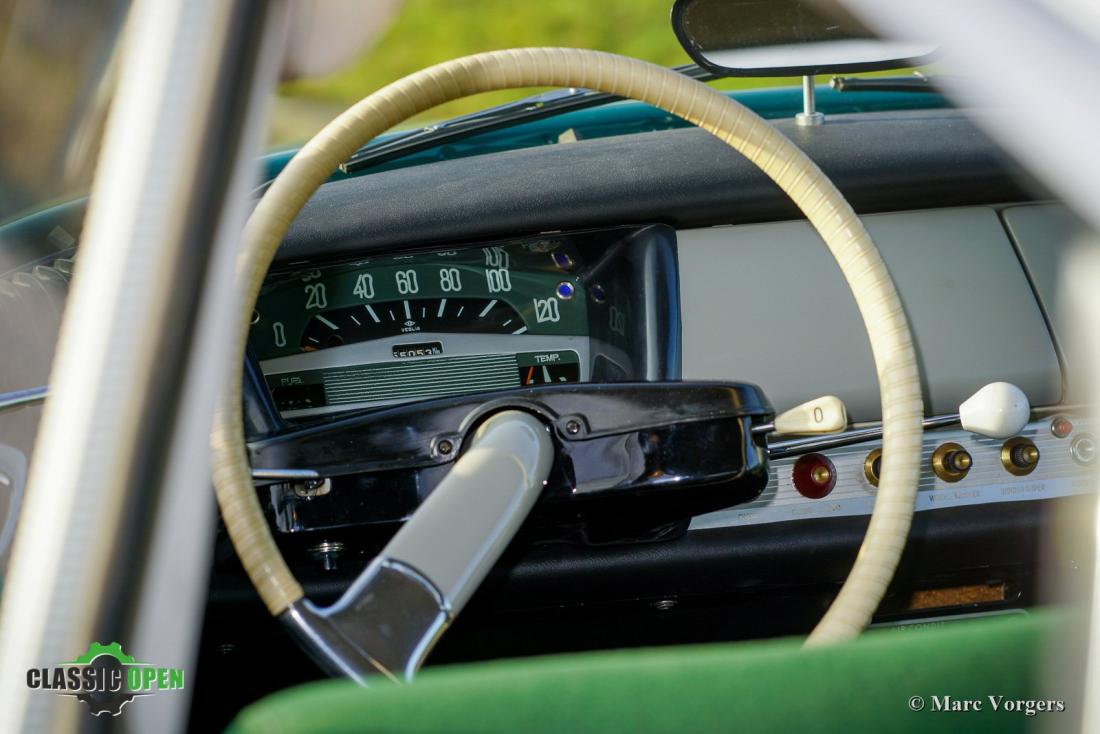 Het interieur is opnieuw gestoffeerd naar originele specificaties. Het dashboard is voorzien van vele fantastische details zoals het unieke enkel-spaaks stuur, de leuke ventilatierooster hendels en de vele kleine draaischakelaars.
